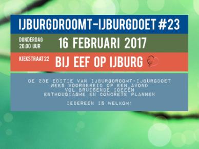 IJburgDroomt-IJburgDoet is een initiatief van een onafhankelijke groep enthousiaste bewoners van IJburg die ieder op een eigen manier bijdragen aan de doorontwikkeling van de wijk. Ondertussen zijn meer dan 400 IJburgers aangesloten op het netwerk en de groep groeit nog steeds. Heb je een wens, idee of project waar je de wijk gelukkig mee kunt maken, laat het ons weten!
