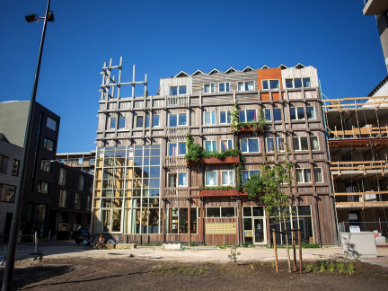 Robin Wood wordt een uniek gebouw op Centrumeiland met 165 middeldure huur- en vrije sector huurappartementen en op de begane grond onder andere een vestiging van de bibliotheek, ateliers, oefenruimtes voor studenten aan het conservatorium en nog veel meer.